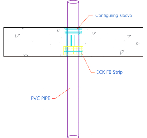 1. Cover the drainpipe sleeve with Firestop strip and make them secured and tightened with waterproof tape.